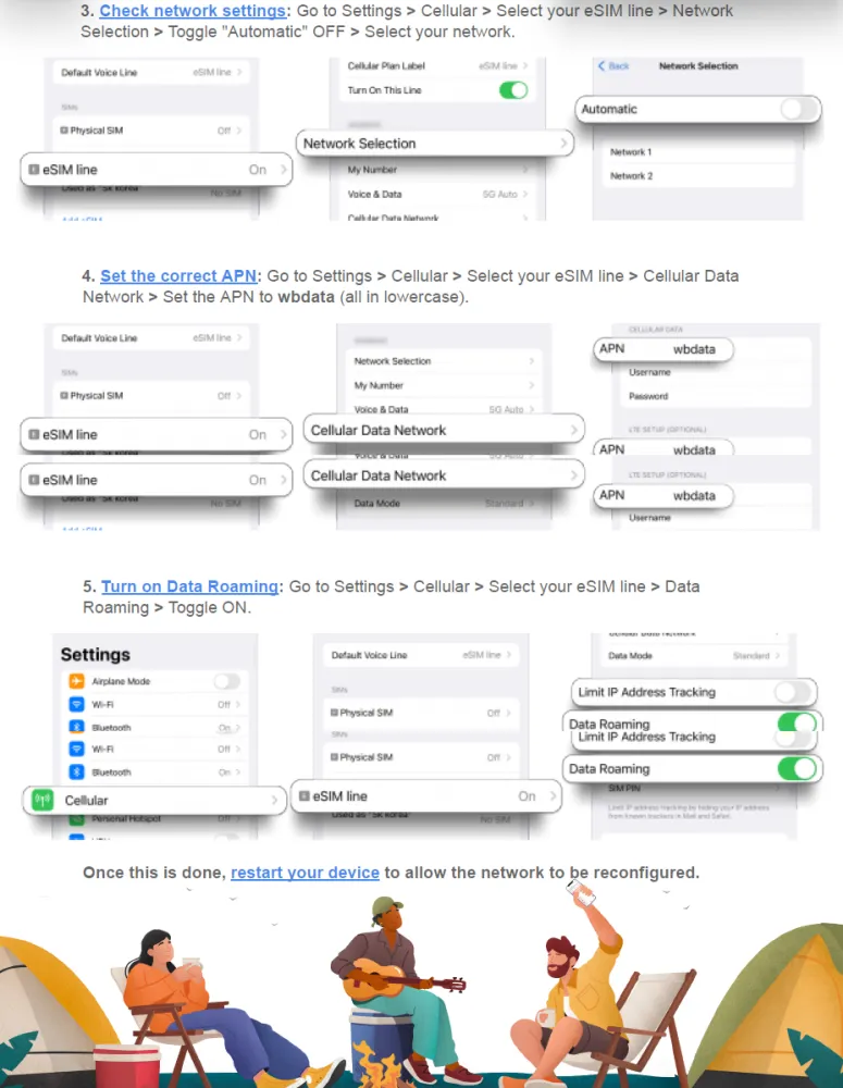 - Please do not delete the eSIM once it has been installed. Do not enable roaming before turning on your eSIM line as you may incur charges from your telco provider.