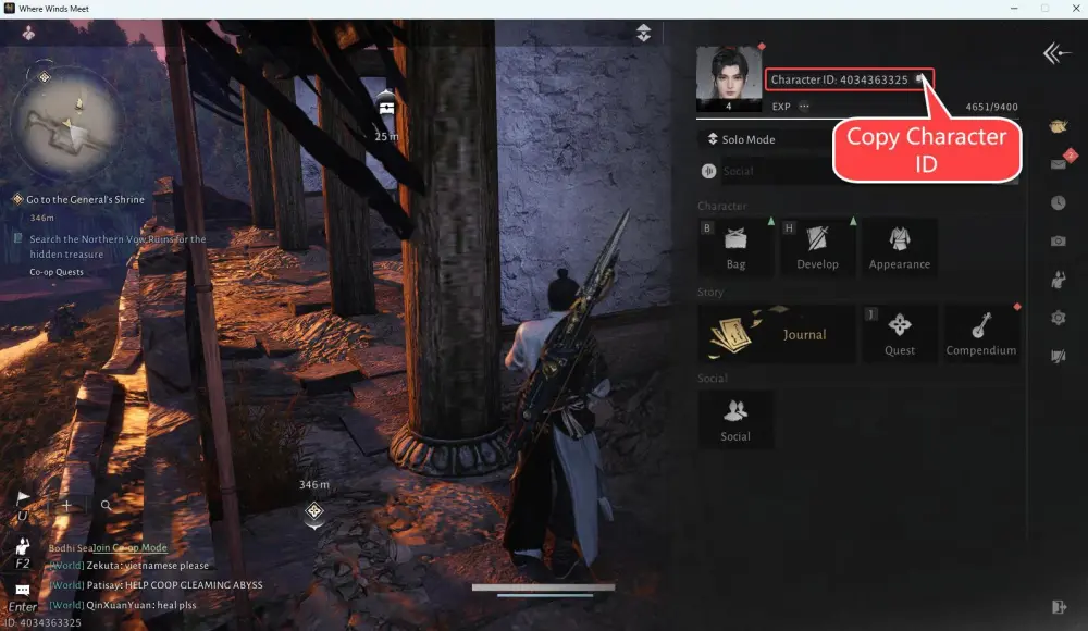 3. Your Where Winds Meet Character ID will be displayed on the screen.
