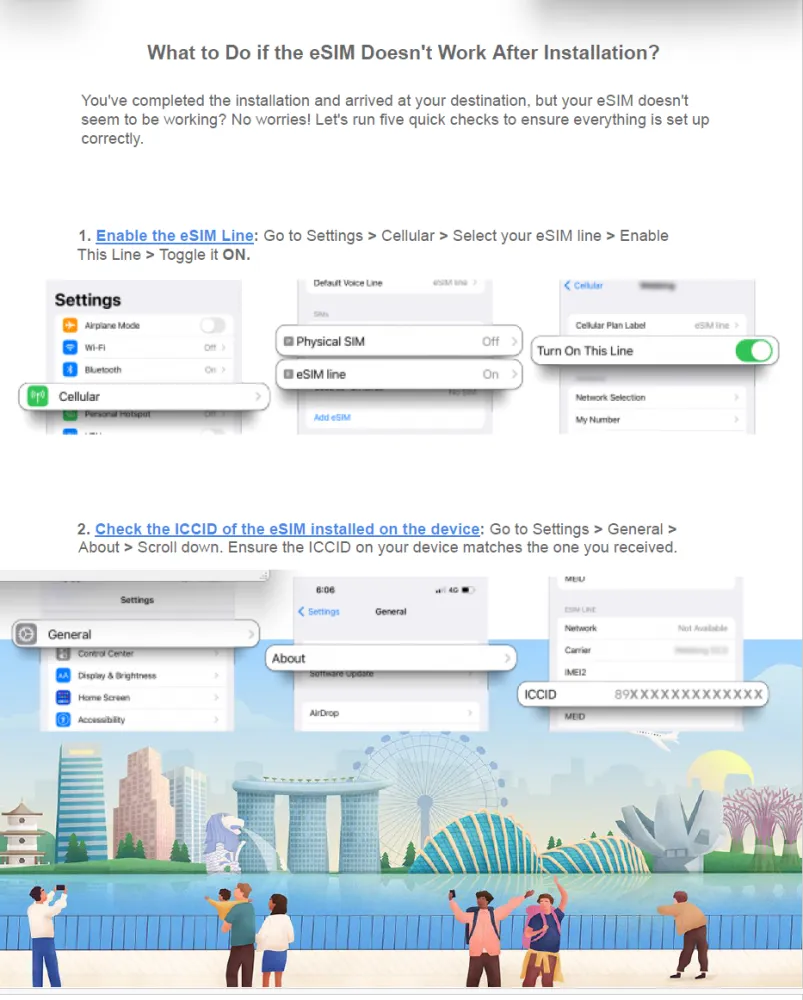 4. Please do not delete the eSIM once it has been installed. Do not enable roaming before turning on your eSIM line as you may incur charges from your telco provider.