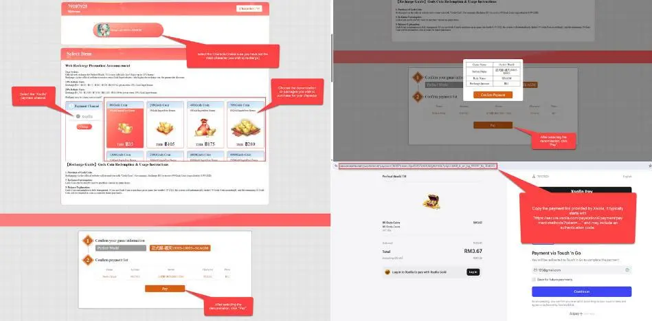 Make sure to follow these steps carefully to complete the recharge process for your Perfect World TH character.