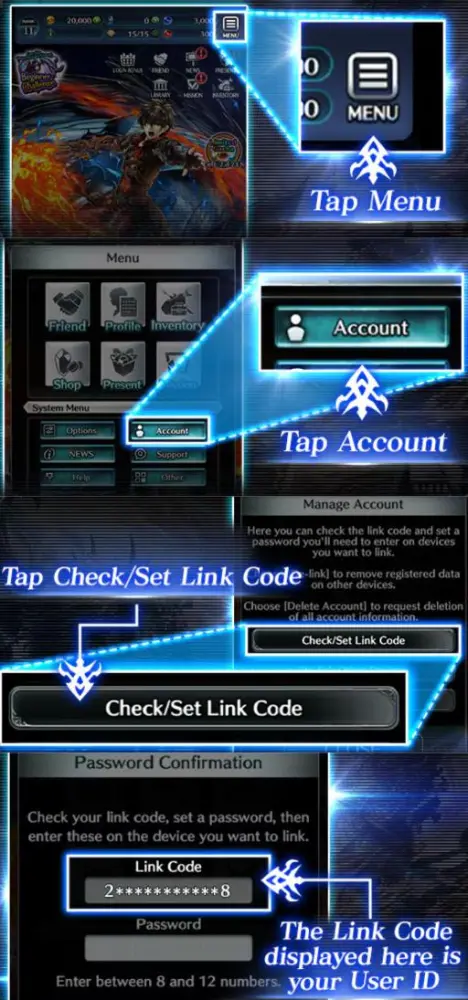 3. In the Menu, tap the Account icon, then select "Check/Set Link Code".